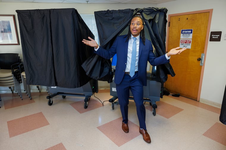 Mahkai Long, 19, a sophomore at Temple University, had already voted at a different Philly polling site earlier in the afternoon but was waiting for his girlfriend, who was casting her vote, outside the Bright Hope Baptist Church.