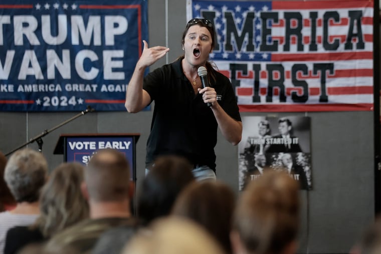 Presler declined to answer questions from The Inquirer about his voter registration efforts during the event, which also featured conservative commentator Tim Pool and right-wing activist Jack Posobiec.