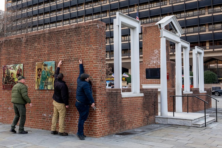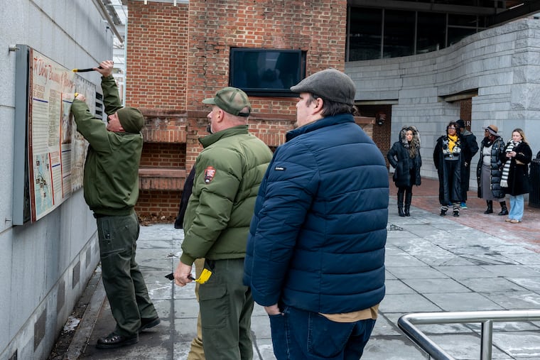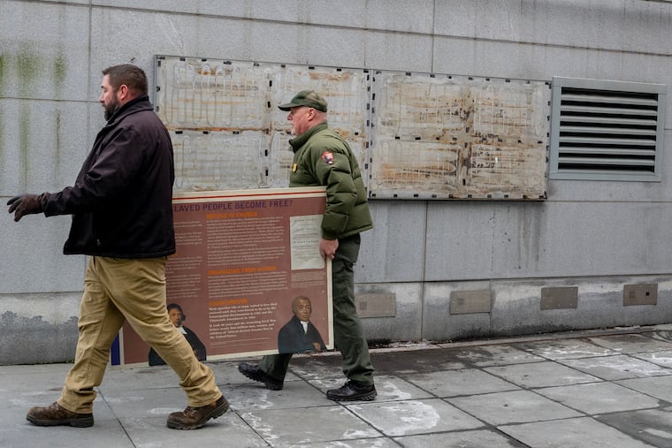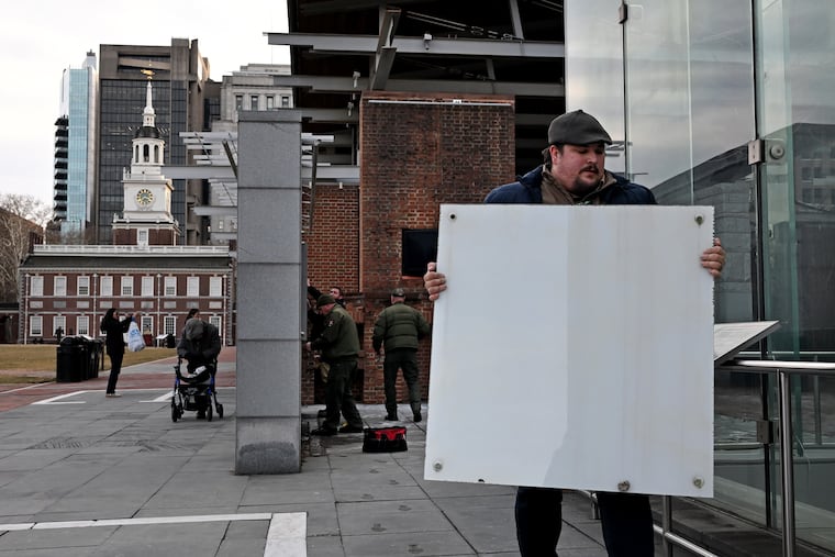 Around 3 p.m. Thursday, an Independence Park employee who would not give his name told an Inquirer reporter that his supervisor had instructed him to take down all the displays at the iconic site earlier that day. Three other individuals later joined the employee to help remove the educational exhibits. The final display was removed at 4:30 p.m. The displays were then loaded into the back of a white Park Service pickup truck.