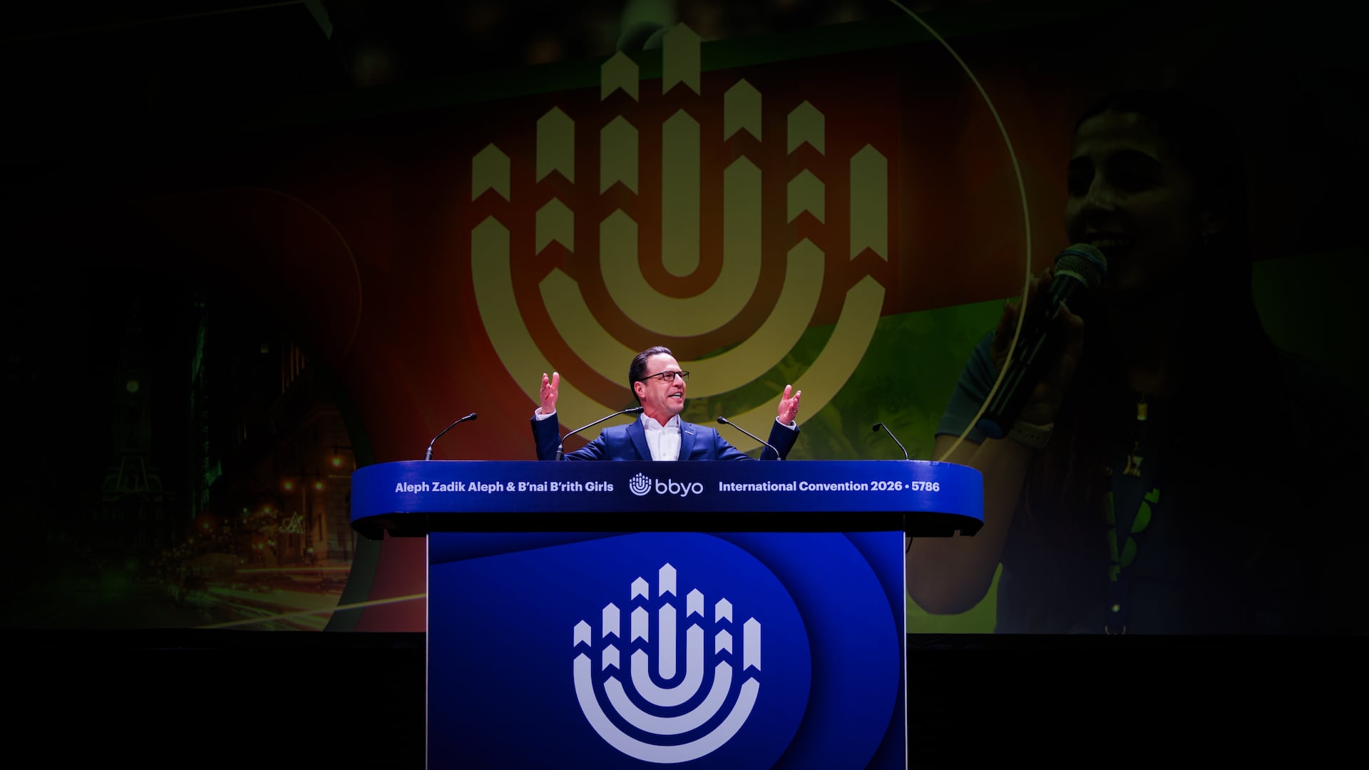 With a large illustration of a menorah towering behind him, Gov. Josh Shapiro spoke in a thundering voice as he urged a crowd of thousands of Jewish teens from around the world to speak out, seek change, and be proud of their faith.