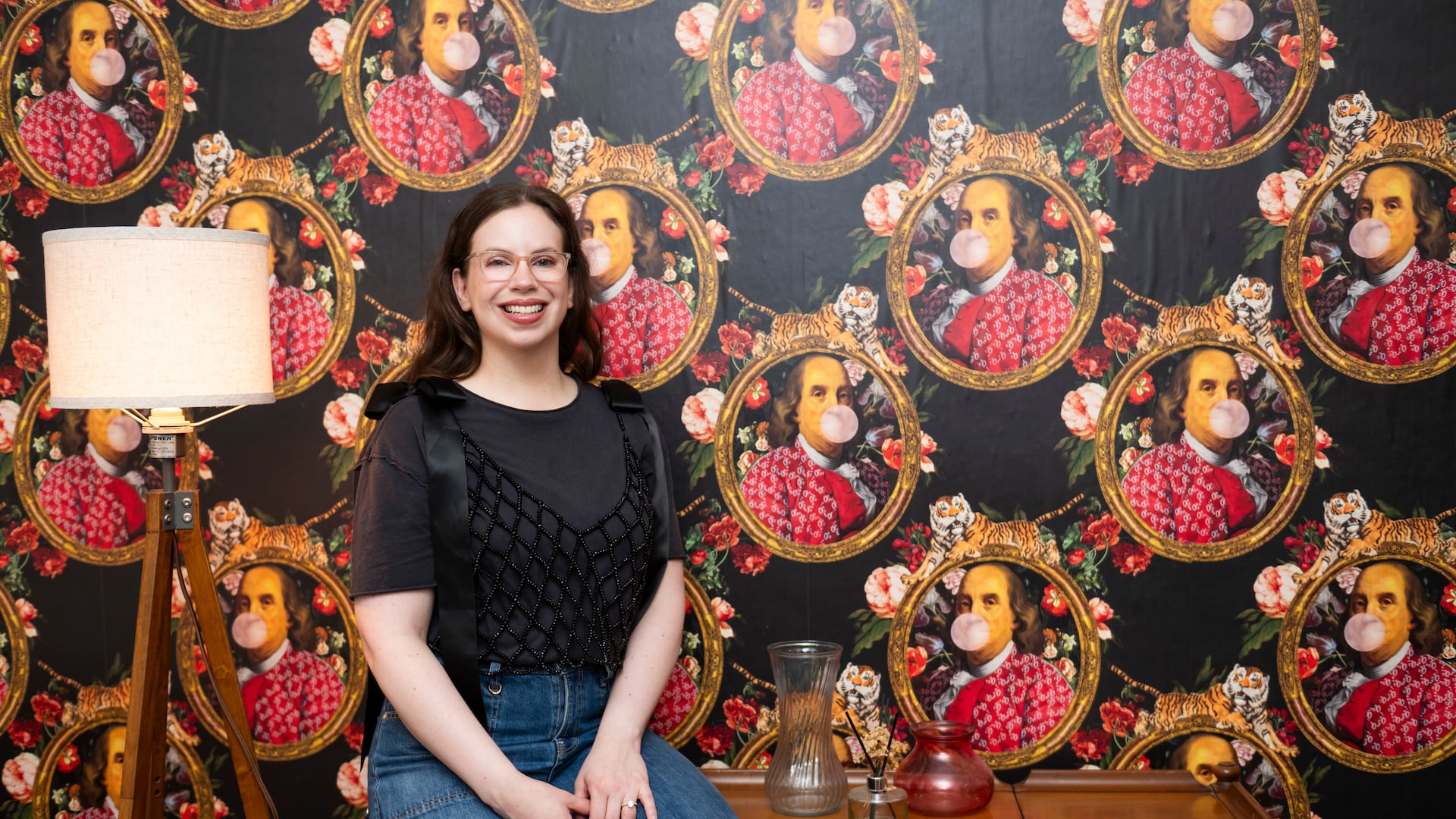 With quirky Ben Franklin wallpaper, personal touches, and original details, Jessica Maiuro quickly made a home of the two-bedroom apartment.