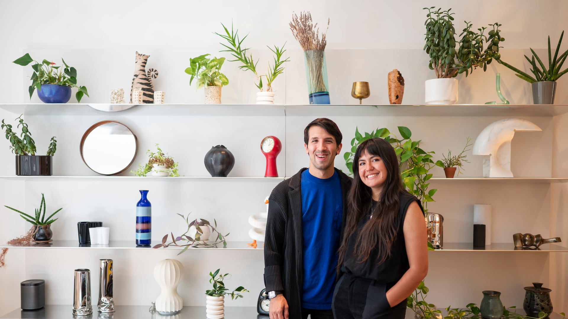 For David Rosenwasser, working from home also means living at work. He and Elisa Medina-Jaudes, who plan to wed next year, share living space with his vintage and contemporary furniture gallery Rarify.