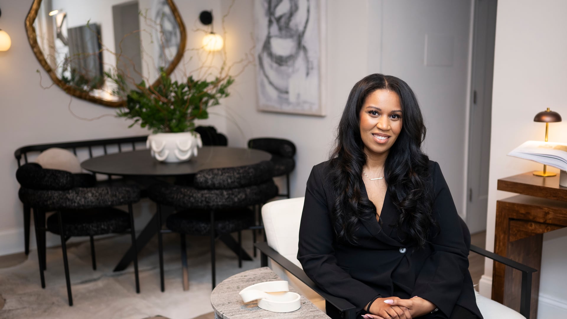 Jasmine Williams has decorated her Philadelphia apartment almost entirely in black, white, and gray.