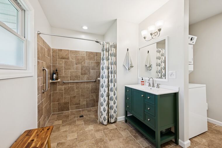 A previous owner renovated the home in 2016 to make it accessible for wheelchair users, including converting one of the three bedrooms into a large primary bathroom.