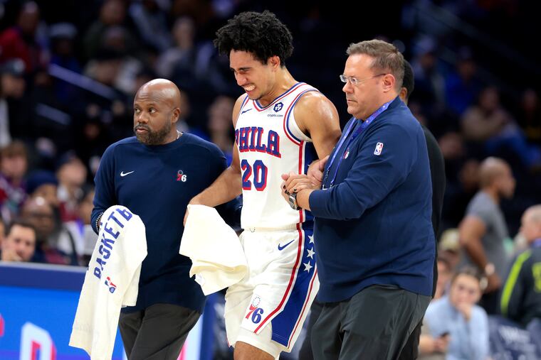 Jared McCain went to the hospital to be evaluated for a concussion and other things following Wednesday’s 117-95 preseason victory over the Brooklyn Nets at the Wells Fargo Center.