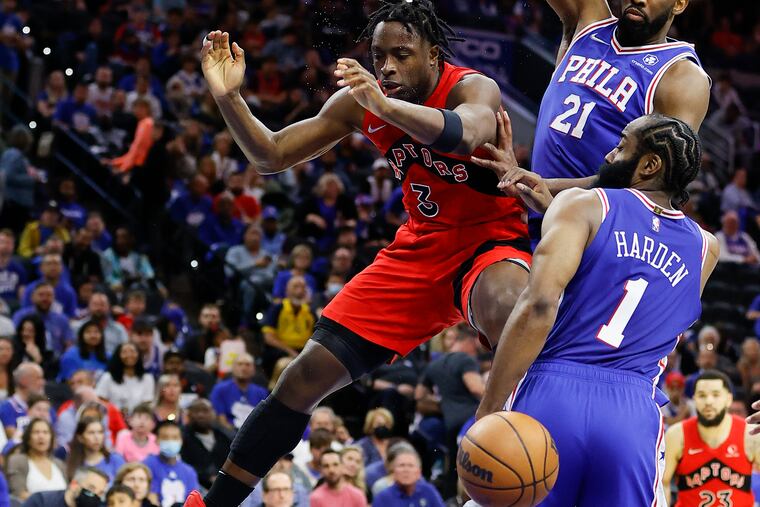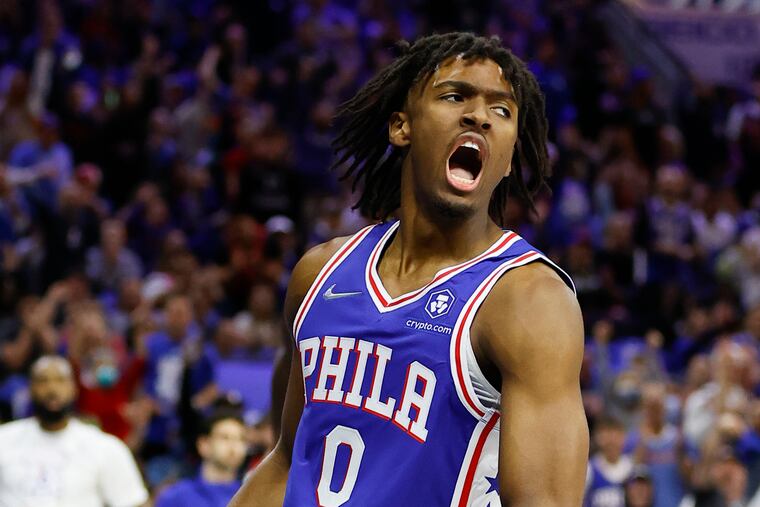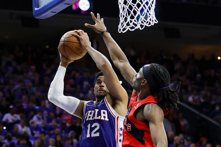 Less than four minutes into the 76ers’ playoff opener against the Toronto Raptors, Tyrese Maxey snagged an offensive rebound off a Tobias Harris missed step-back jumper and dished to James Harden for a three-pointer at the top of the key. On the ensuing possession, Harris swiped the ball from the Raptors’ OG Anunoby and kicked it ahead to Maxey for crowd-igniting dunk.