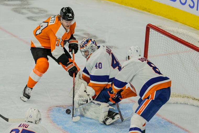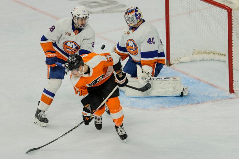 The Flyers started to wake up in the second, evening the shot count and offensive-zone time. While they fell behind on Mathew Barzal’s goal, they responded quickly with a goal by Nicolas Deslauriers. But their final push in the last two minutes after they pulled Hart for an extra skater wasn’t enough to tie the game.