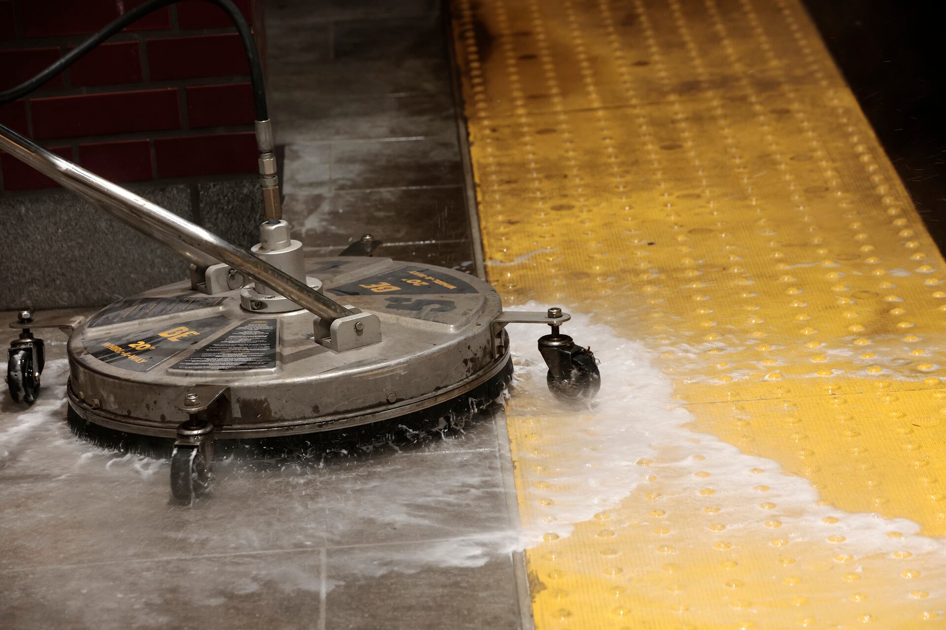 Wash down crews blast trash, human waste, and dirt from transit stations, then do it all over again.